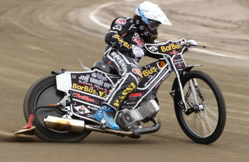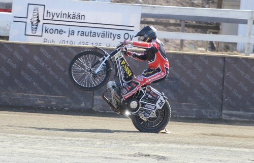 The last Finnish league match was held in Hyvinkää, after it was postponed twice. Sand Blowers used the same squad as in previous matches, Jari was again number two. Jari had ups and downs in this meeting. He took two heat wins and was last twice. From one heat he scored two points. So alltogether Jari scored eight points from five heats. Sand Blowers came last in the meeting and also in league.
